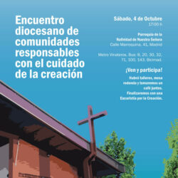 puedes sumarte al encuentro diocesano de parroquias y comunidades eclesiales comprometidas con el cuidado de la creación, que celebraremos el 4 de octubre en la Parroquia de la Natividad de Nuestra Señora, en Madrid, a las 17:00h. Allí seguiremos buscando signos de esperanza, dando pasos para la paz. Continúa leyendo…